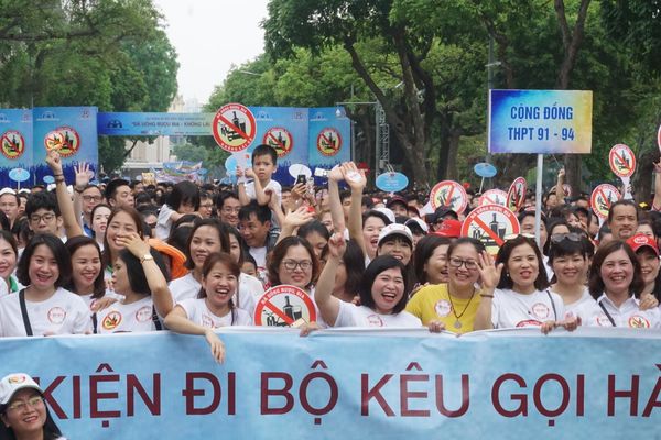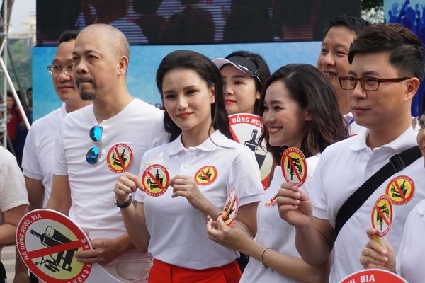 Hình ảnh người dân thủ đô đi bộ quanh bờ hồ Hoàn Kiếm kêu gọi cộng đồng “Không uống rượu bia khi lái xe”.