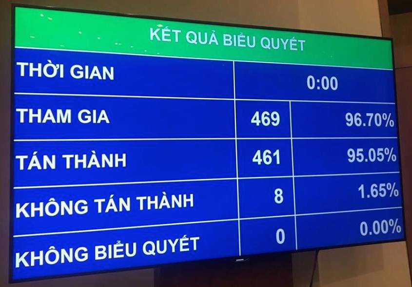 Nghị quyết có hiệu lực thi hành từ ngày 24-10, sau khi được các đại biểu biểu quyết thông qua với tỷ lệ 461/469 đại biểu tán thành (chiếm 95,05%).