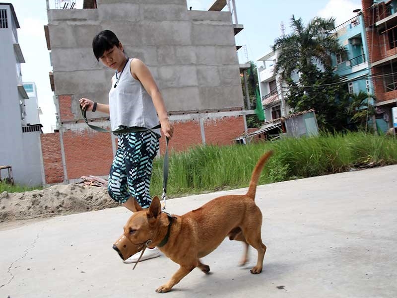 Từ ngày 15/9, chó dù có người dắt mà không được đeo rọ mõm thì chủ nuôi sẽ bị phạt tiền. Ảnh: HTD