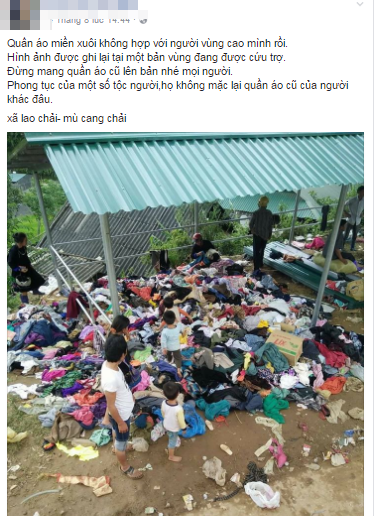“Tôi cũng đi và cũng biết chút ít, đa phần quần áo trẻ em là dùng được còn quần áo người lớn thì không. Một là do tạng người đồng bào nhỏ bé mà quần áo của chúng ta rất rộng họ không mặc được. Hai là, quần áo chị em phụ nữ miền xuôi toàn là váy đầm thời trang và quần rách tả tơi. Có người còn mang cả bikini cho thì làm sao trách được người nhận” - tài khoản V.T.A.P bình luận.