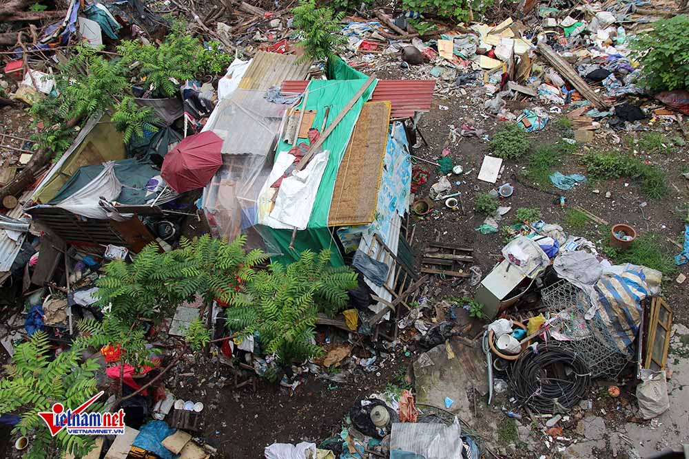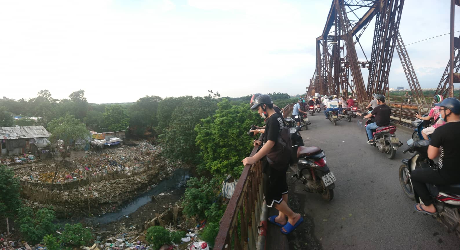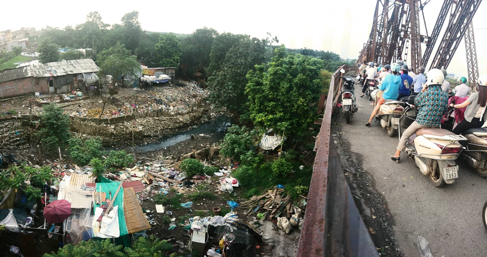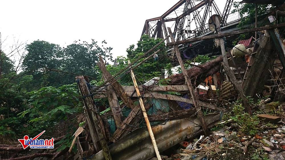 Cảnh ngổn ngang phế thải ở chân cầu Long Biên