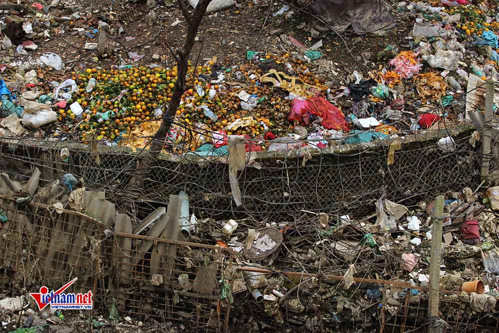 Một góc dưới chân cầu Long Biên ngập ngụa rác thải