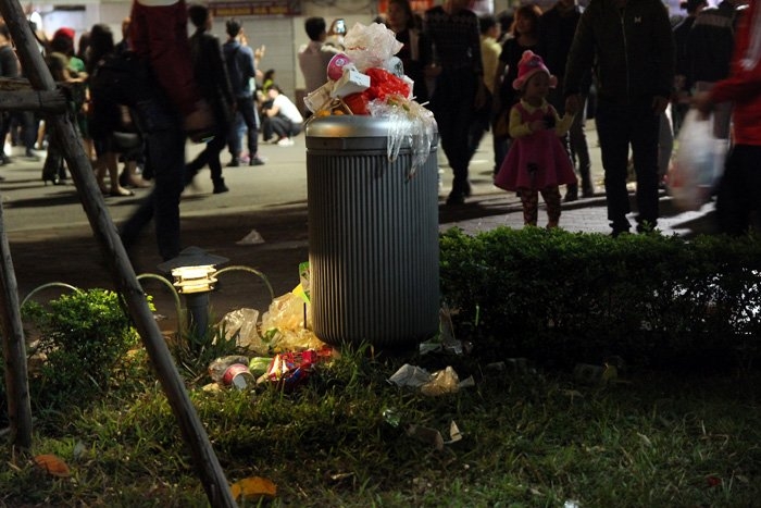 Rác thải ngập ngụa vì lượng người đổ về quá đông