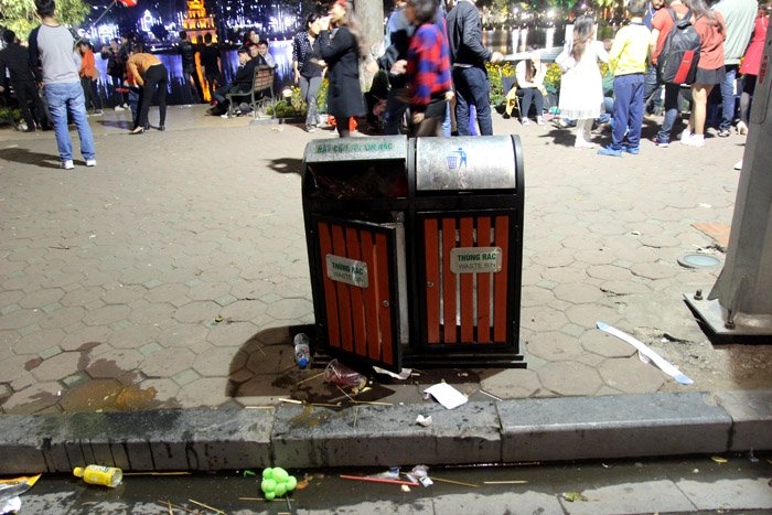 Trong khi đó, nhiều người lại ném rác ngay cạnh thùng