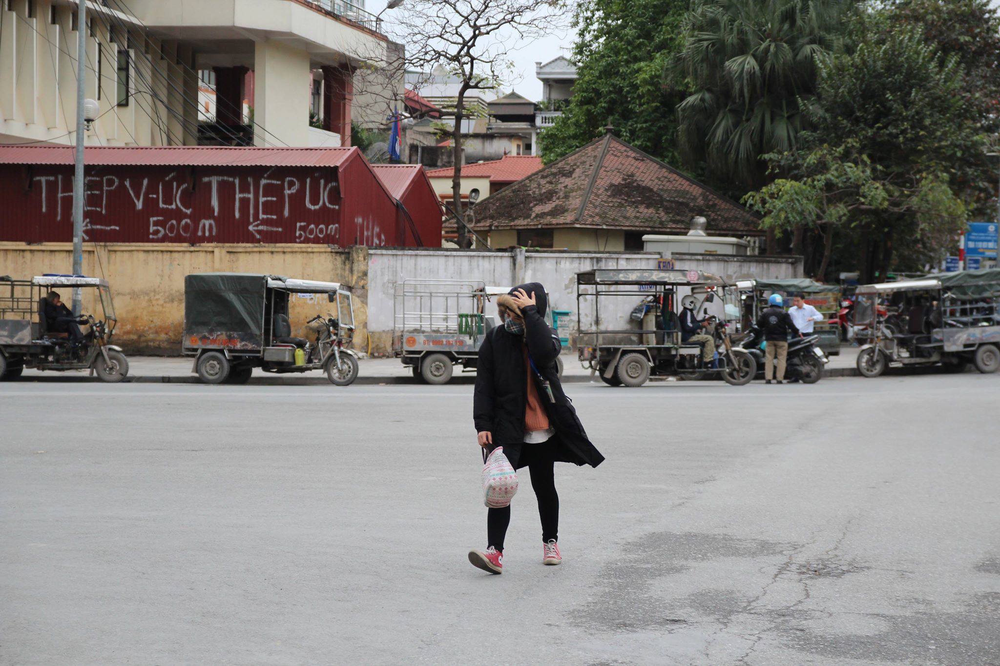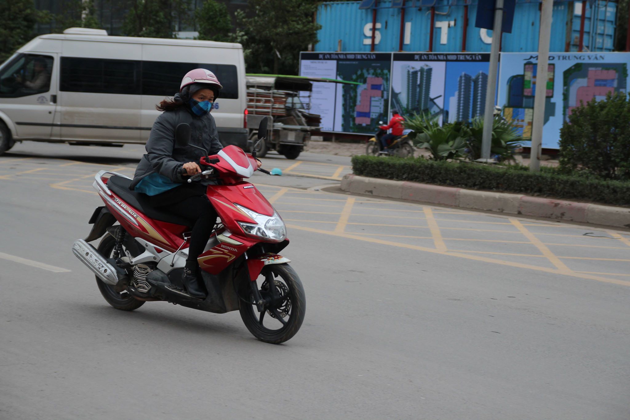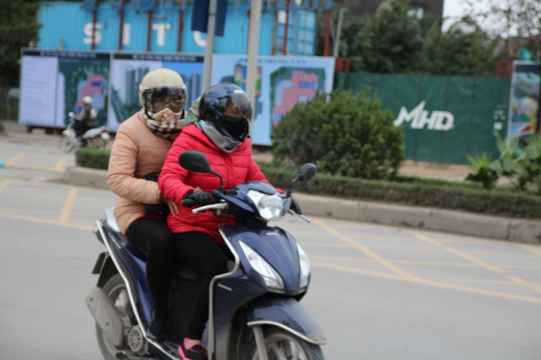 Cái rét càng rõ hơn khi xe chạy qua các khu vực gần toà nhà cao tầng, hút gió lớn. Nhiều người không dám di chuyển nhanh.
