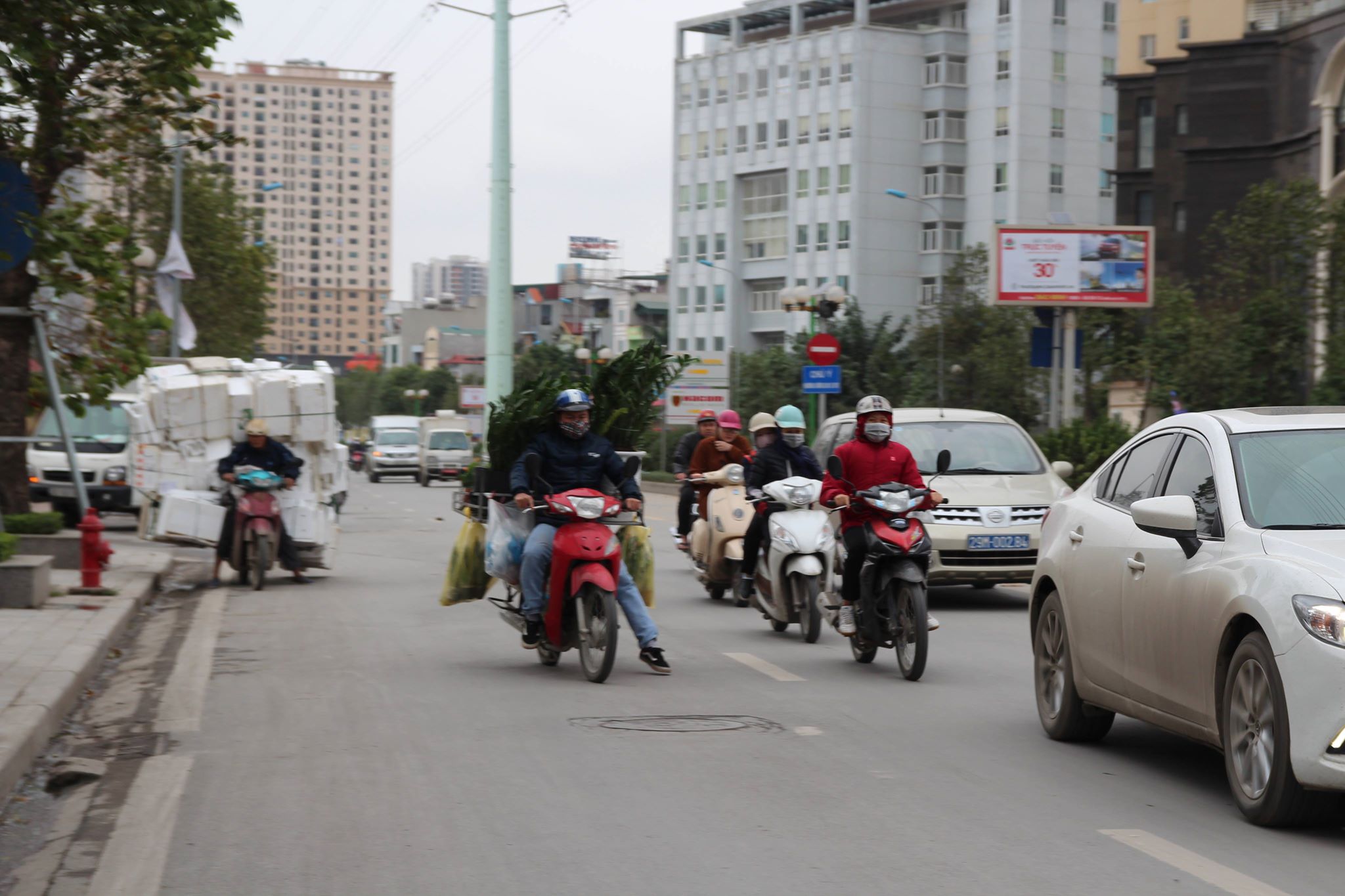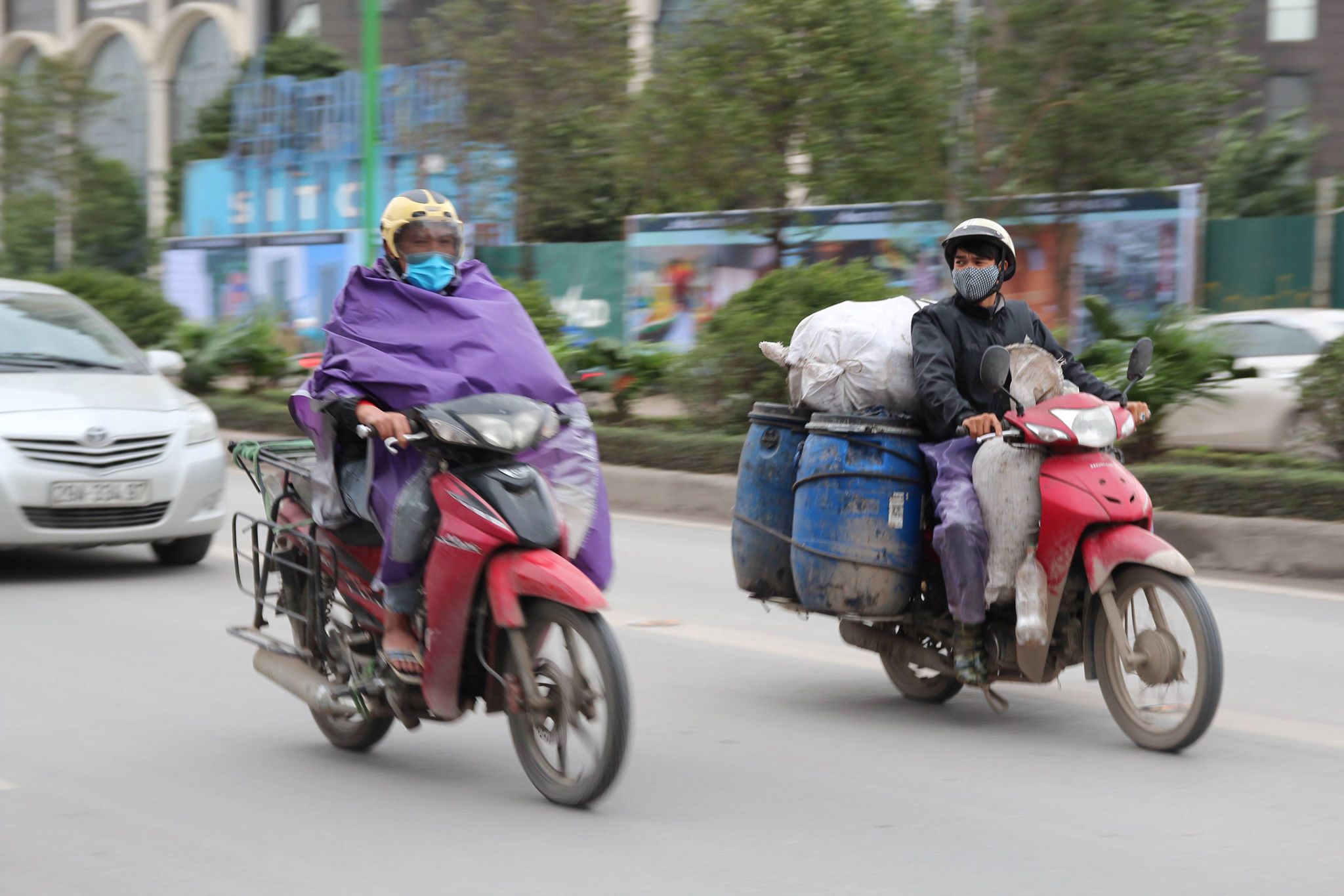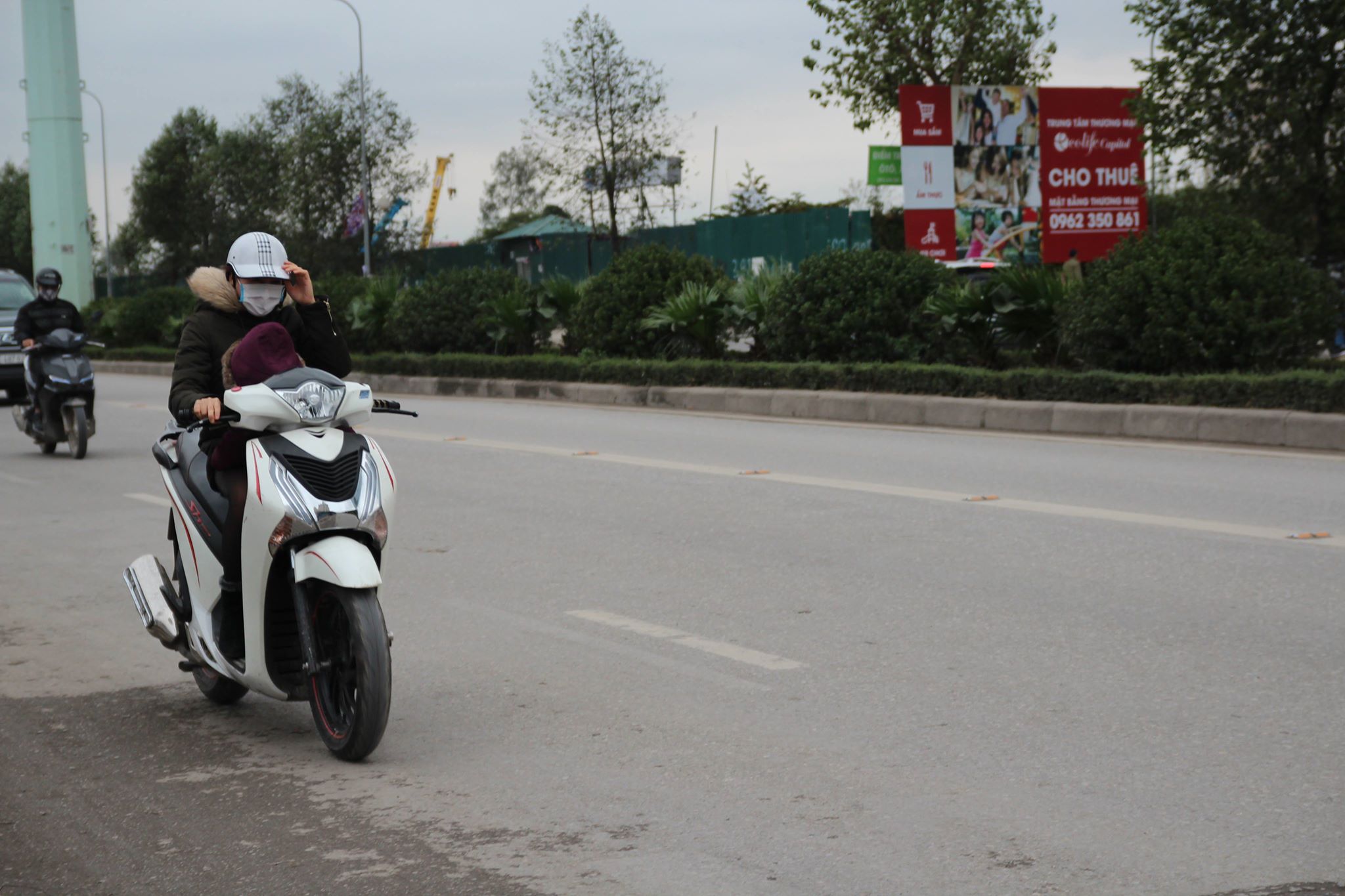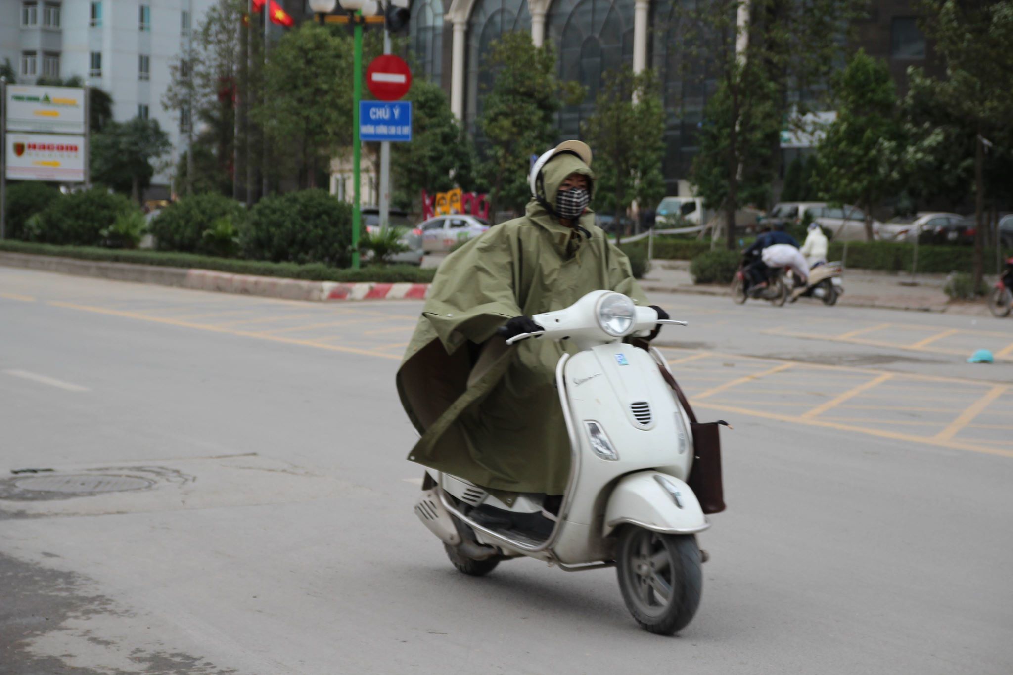 Nhiều người cho con nhỏ ra ngoài đường che chắn cẩn thận.