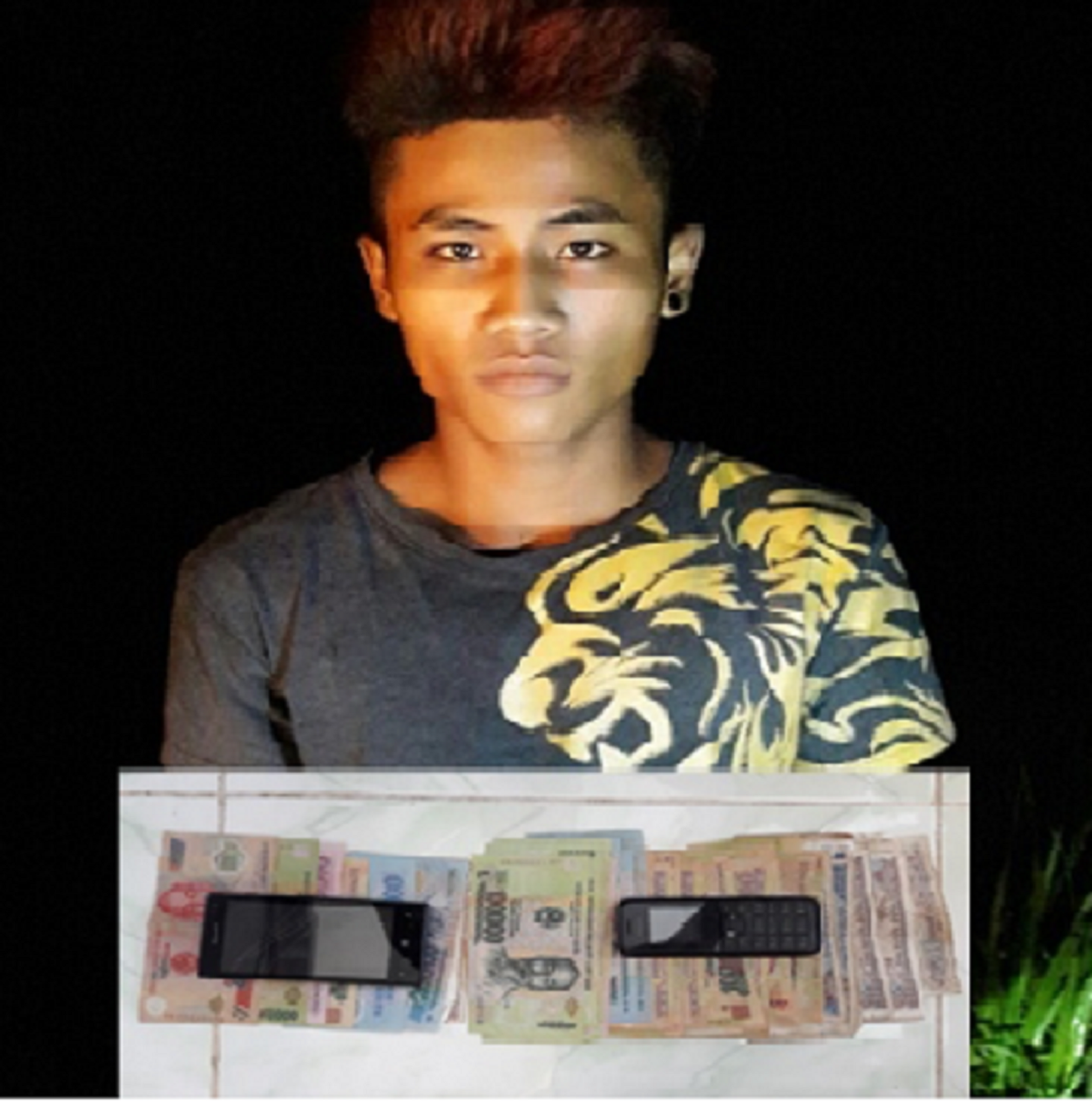 Đối tượng Thạch Phương Toàn và tang vật vụ án.