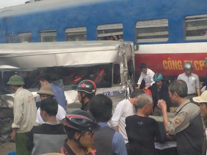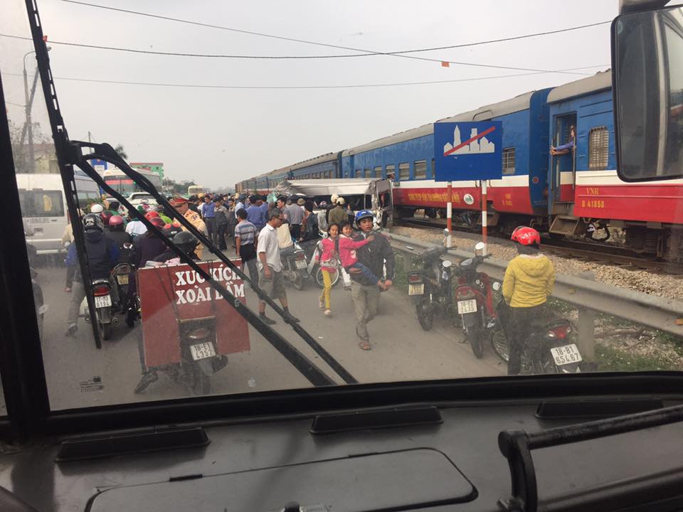 Vụ tai nạn đầu tiên xảy ra vào khảng 15h30 ngày 4/2. Một chiếc xe du lịch 16 chỗ khi cố vượt qua đường ngang dân sinh tại xã Liên Minh, huyện Vụ Bản, Nam Định đã bị đoàn tàu Thống Nhất tông trúng. Chiếc xe ô tô bị tàu hỏa đang chạy đâm với lực mạnh nên bị văng ra xa và móp đầu.