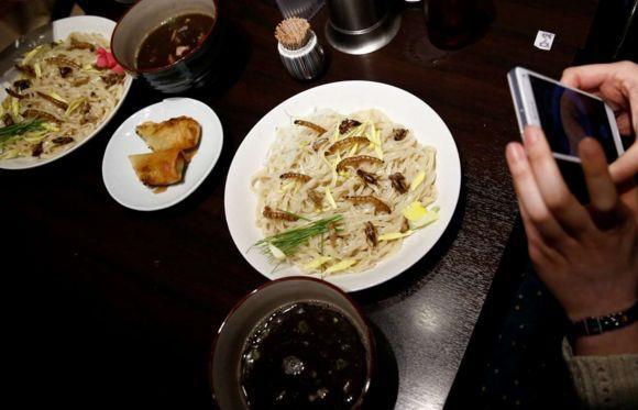 Chủ Nhật vừa qua, Ramen Nagi, một tiệm mì ở thủ đô Tokyo, Nhật Bản bỗng dưng kín khách, người đến có khi phải xếp hàng một lúc mới có được chỗ ngồi trong tiệm. Lý do là vì món ăn mới của tiệm: Mì Tsukamen sâu bọ.