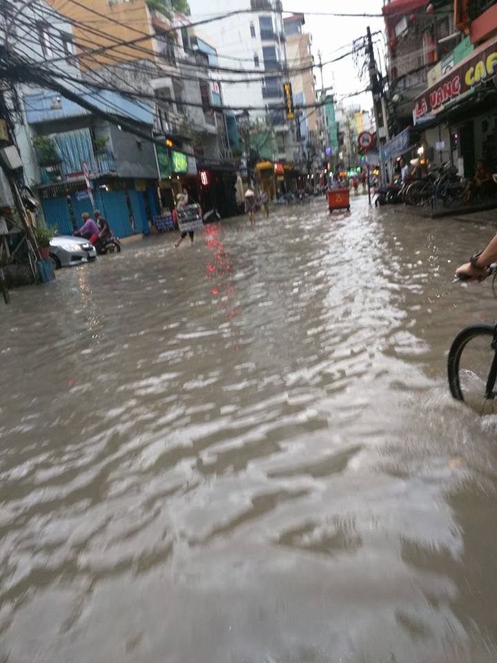 Khoảng hơn 2 chiều ngày 21/6/2017, gió giật mạnh cùng cơn mưa xối xả đổ xuống bầu trời Sài Gòn khiến nhiều con đường rơi vào tình cảnh ngập lụt. Thêm vào đó, mặc dù là ban ngày nhưng mây đen dày đặc, bầu trời tối tăm như về đêm khiến tầm nhìn hạn chế, nhiều phương tiện phải bật đèn mới lưu thông được.