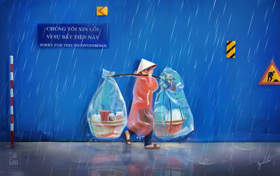 Đâu đó giữa cơn mưa Sài Gòn tiếng rao vẫn vang lên và bàn chân không ngừng bước.