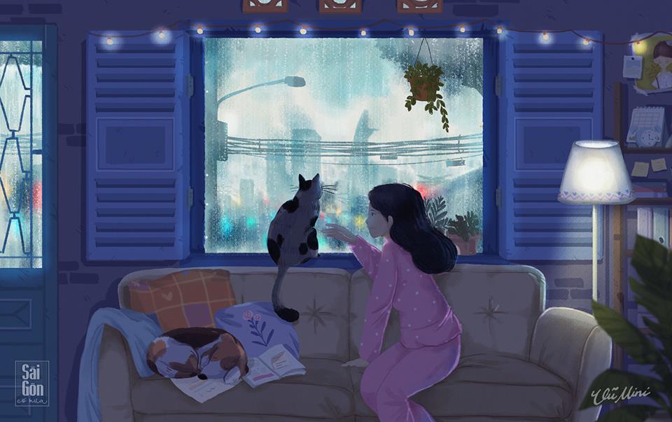Khi Sài Gòn có mưa là lúc chỉ muốn ở trong nhà ngắm nhìn thành phố qua ô cửa nhỏ và nghe tiếng mưa lộp độp trên mái tôn.