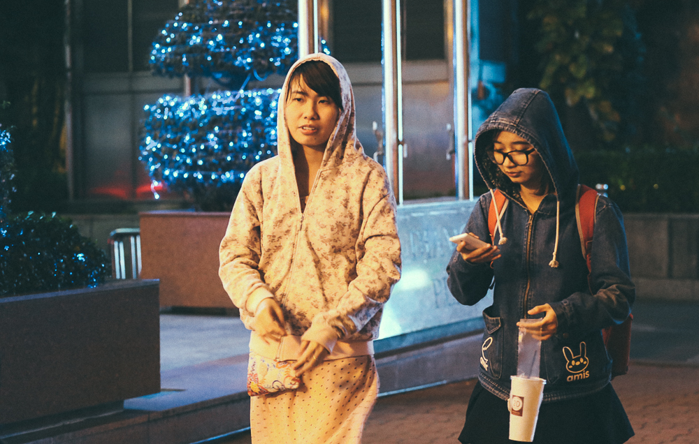 Các bạn trẻ thư thả dạo phố đón gió lạnh.