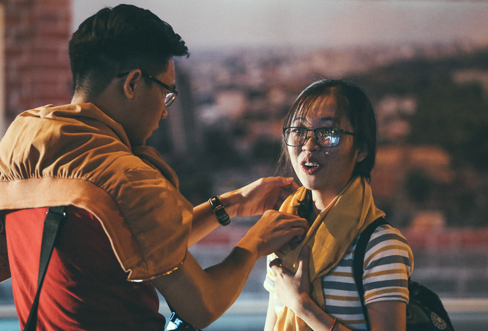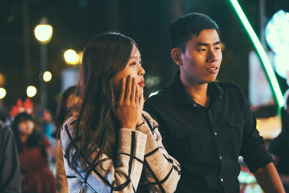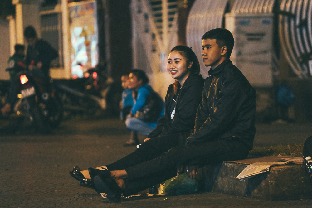 Nhiều cặp đôi ngồi co ro tận hưởng thời tiết se lạnh ở Sài Gòn.