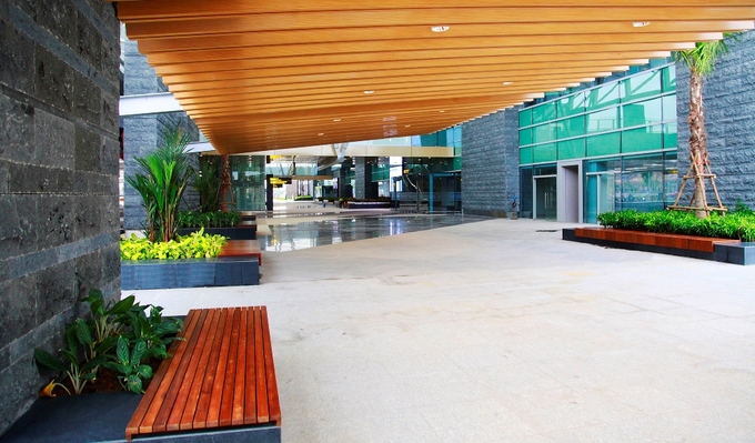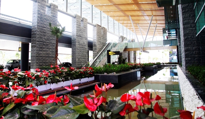 Phần mái che khu vực sảnh bên ngoài nhà ga sân bay được sử dụng kính Low-E có tác dụng giảm bức xạ nhiệt, chống nóng.