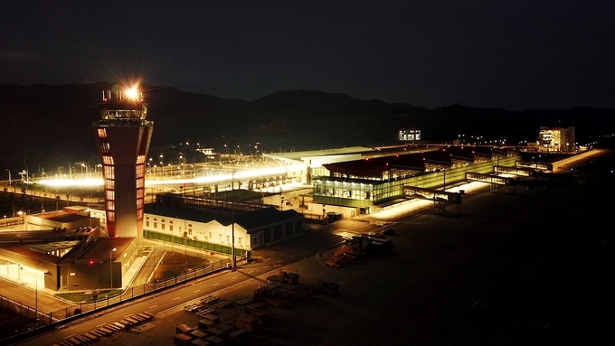 Cảng hàng không quốc tế Vân Đồn về đêm. Bên cạnh thị trường trong nước, sân bay dự kiến khai thác các đường bay đến và đi từ khu vực Đông Bắc Á và Đông Nam Á.