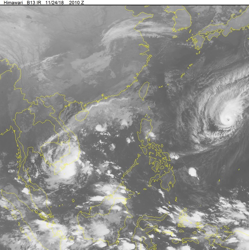 Hình ảnh mây vệ tinh mới nhất của bão số 9 được Trung tâm dự báo Khí tượng Thủy văn Trung ương phát đi trong bản tin 5h sáng ngày 25/11.