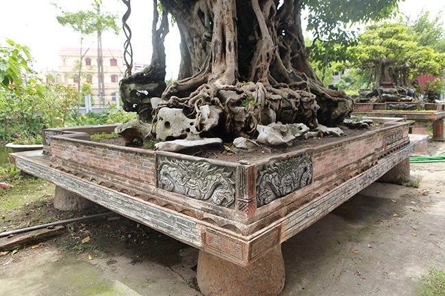 Cây được ký (trồng) trên đá xanh trơn lũa hình cụ rùa, nghệ nhân phải làm 40 công mới xong. Cụ rùa bằng đá có đầy đủ bộ phận như đầu, mai, chân và đuôi…