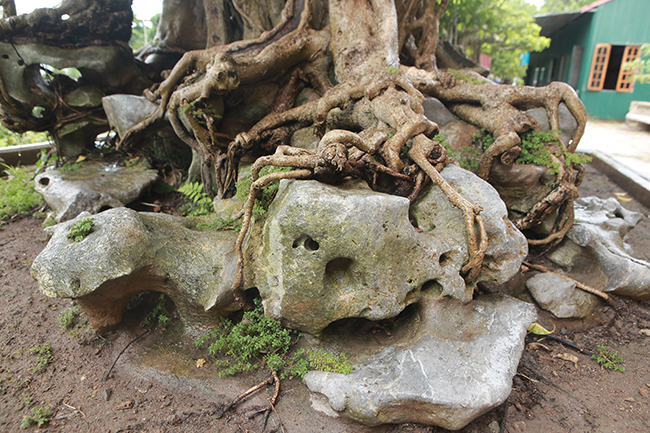 Bộ rễ cây lan tỏa xung quanh, bám vào đất, đá rất vững trãi, nhìn như những củ nhân sâm nhiều năm tuổi bám trên đá.