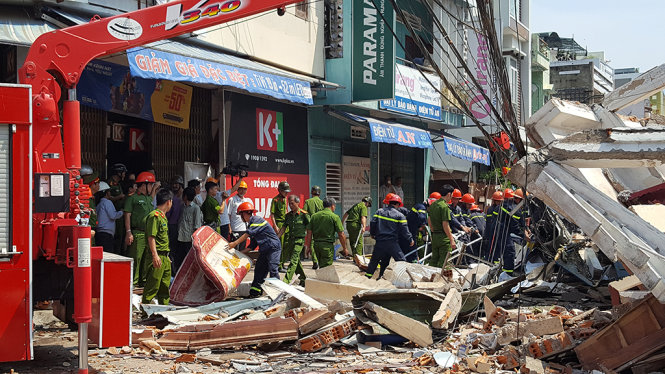 Đó là hai công nhân đang xây móng nhà số 298 Trần Hưng Đạo tên Bùi Văn Nhàn (43 tuổi) và Nguyễn Thị Thơm (39 tuổi) cùng một nhân viên bán hàng ở nhà số 300 Trần Hưng Đạo.
