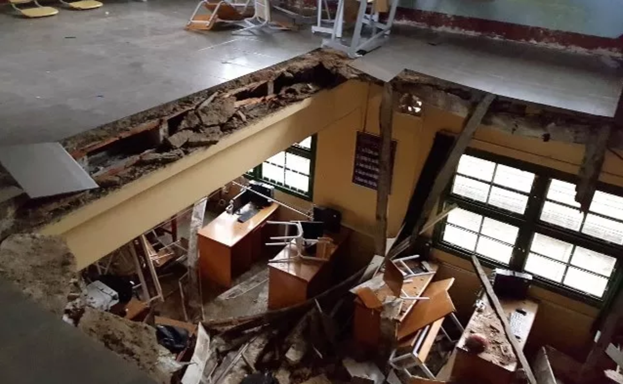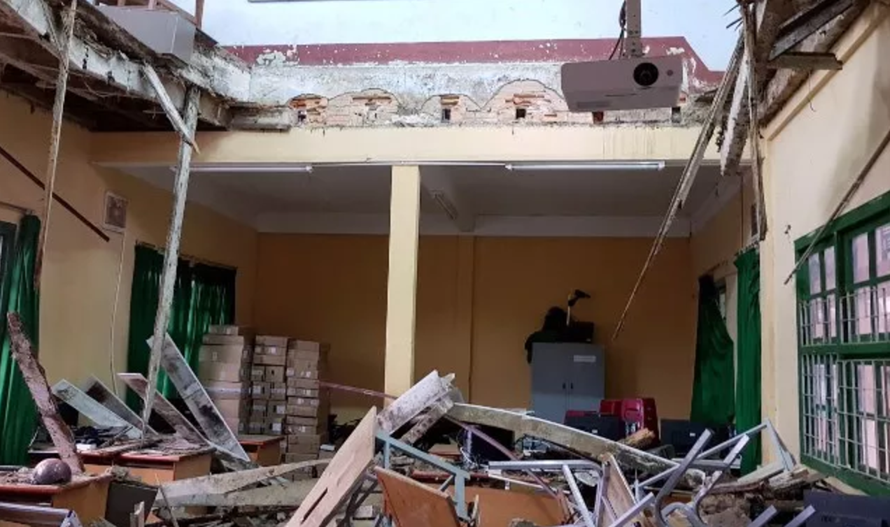 Mười học sinh cùng bàn ghế rơi xuống phòng tin học.