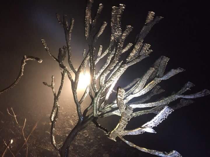 Vào khoảng 20h tối 6/4, du khách tham quan đỉnh núi Fansipan - nơi có độ cao 3.143 m so với mực nước biển bất ngờ khi thấy cây cỏ bao phủ một lớp băng giá trong suốt. Nhiệt độ ngoài trời lúc này đang ở mức 0 độ C.