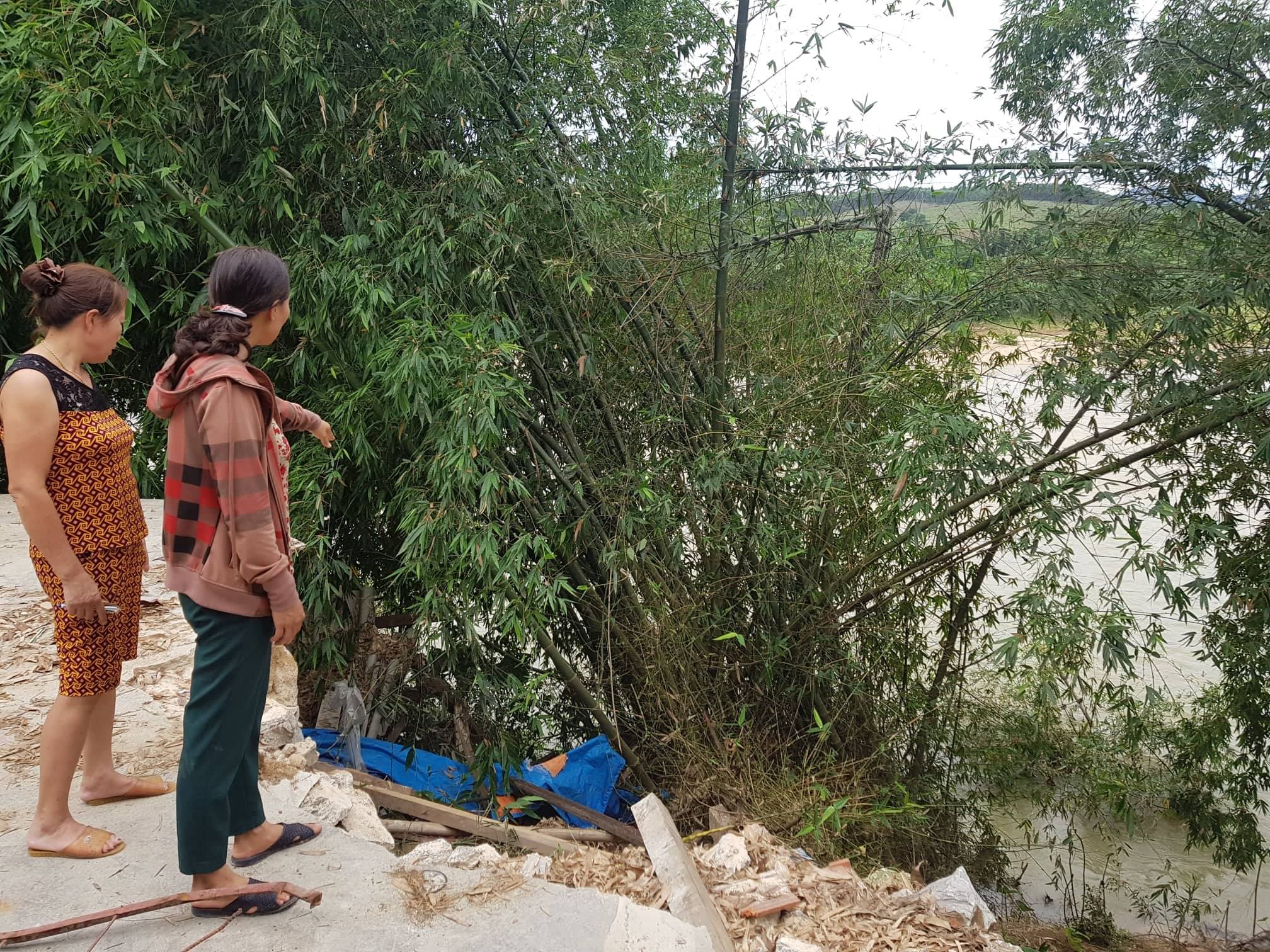 Theo quan sát, các bụi tre chắn sóng phía sau nhà bà Lục và các hộ dân lân cận đã bị lún và kéo ra xa, sát mép nước sông, tường nhà đã xuất hiện vết nứt sau đợt sạt lở chiều ngày 29/7, đất bị cuốn trôi đi rất nhiều.