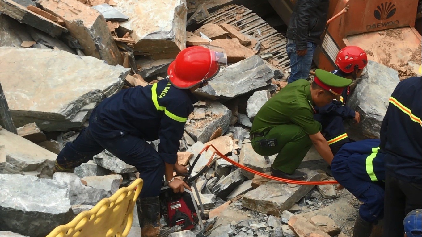 Do địa hình xảy ra tai nạn hiểm trở, khối lượng đá sạt khá lớn khiến lực lượng cứu hộ phải mất nhiều thời gian mới nâng được tảng đá đè cabin xe múc, để đưa nạn nhân ra ngoài. Lúc này, anh Vĩnh đã tử vong.