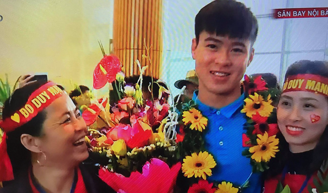 Lần đầu tiên trong lịch sử bóng đá Việt Nam, các cầu thủ U23 đã làm nên lịch sử. Ngày hôm nay, 28/1, trong niềm vui hân hoan, cả nước đổ dồn sự chú ý về sân bay Nội Bài (Hà Nội) khi những người anh hùng trở về nước. Ngay khi xuống chuyên cơ riêng, hàng nghìn người hâm mộ đã tập trung kín sân bay chào đón U23 trở về.