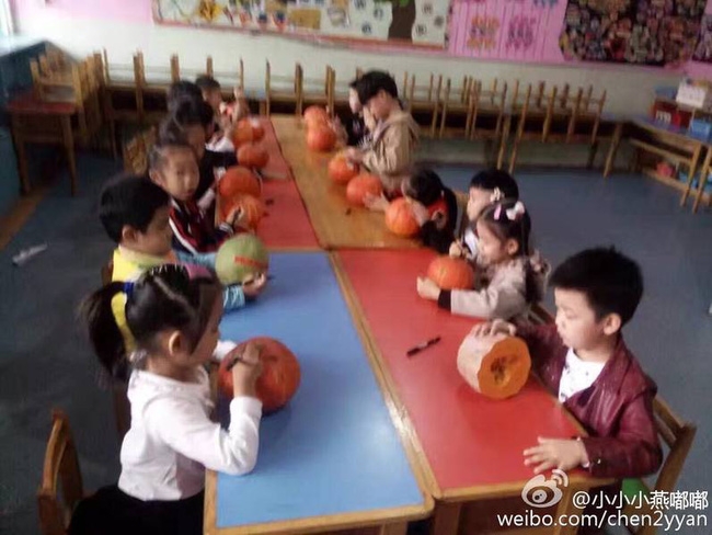 Một cậu bé người Trung Quốc khác cũng tỏ ra vô cùng bối rối khi quả bí đỏ của mình khác hẳn với các bạn cùng lớp.