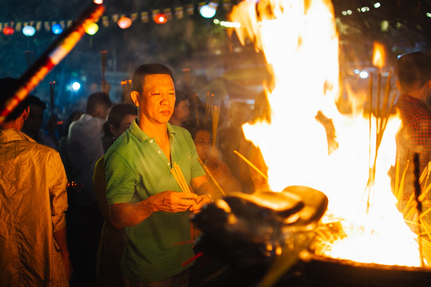 Càng về khuya lượng người đổ về chùa ngày một đông đúc hơn.