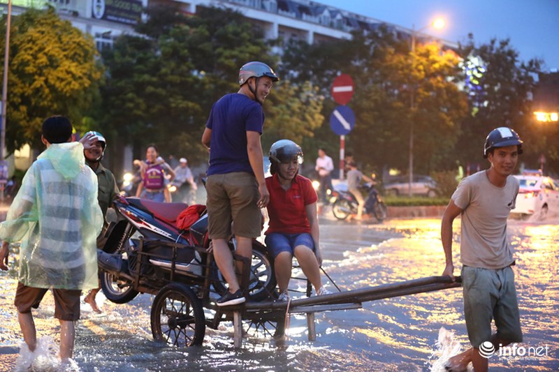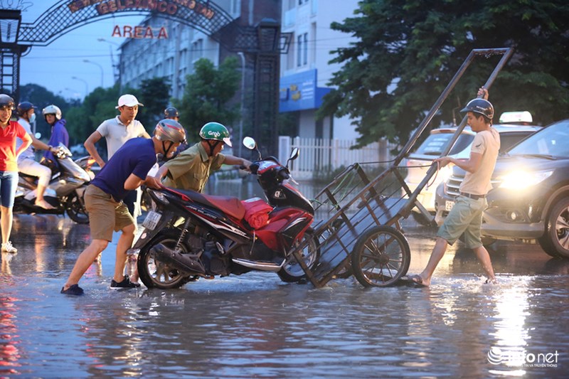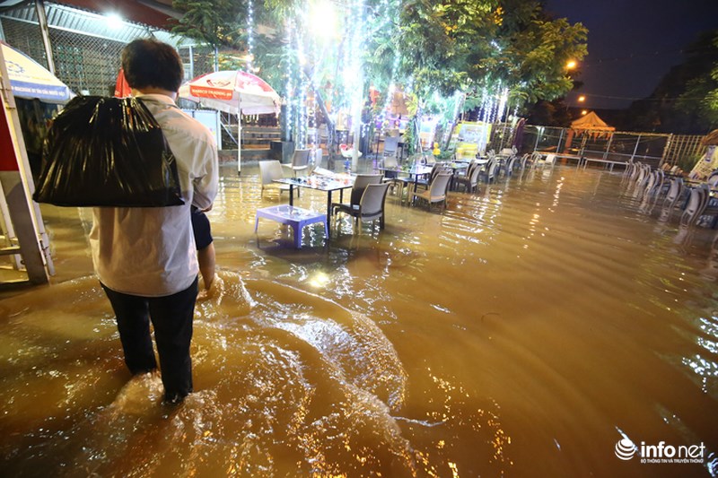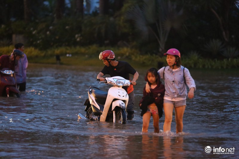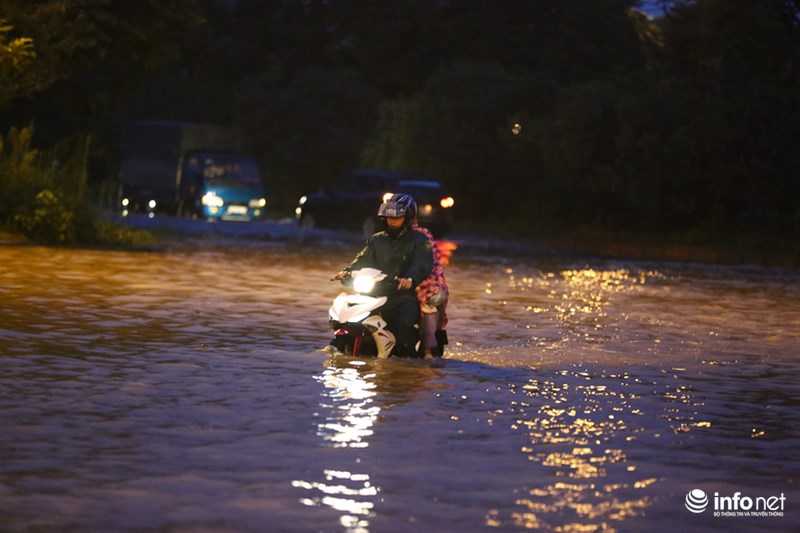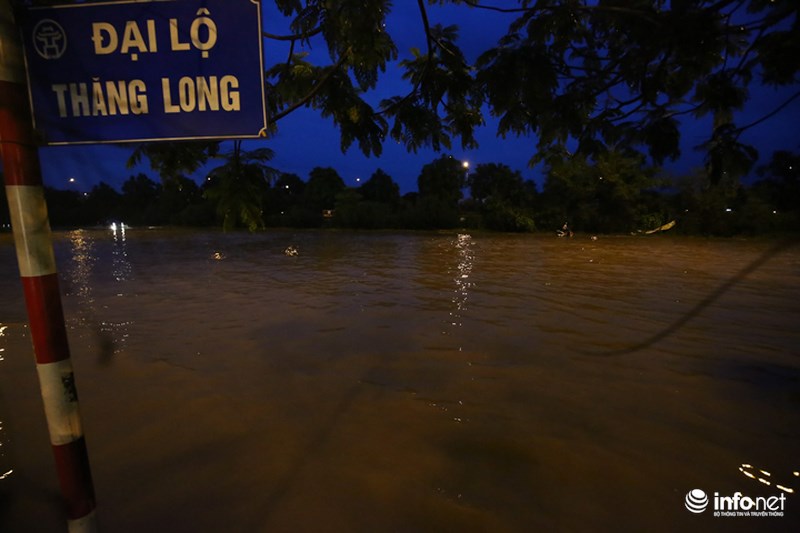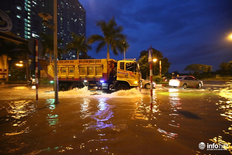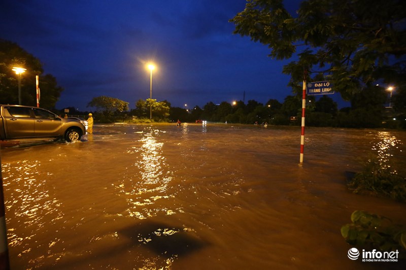 Trong đó, lượng mưa lớn nhất tập trung ở Quốc Oai. Vì thế, Đại lộ Thăng Long, đoạn ngã ba giao Lê Trọng Tấn và hầm chui dân sinh 3, 5, 6 bị ngập úng nặng nề và nước đang thoát chậm.