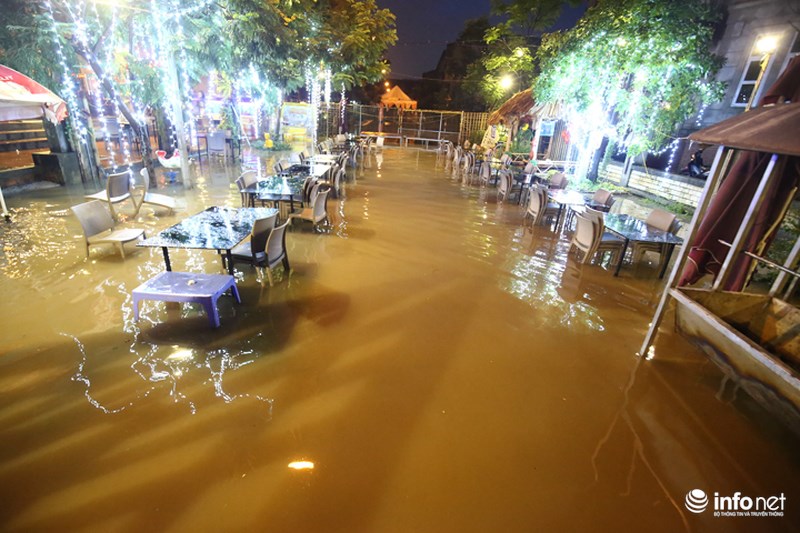 Nhiều nhà hàng, quán ăn bị dòng nước nhấn chìm cả ngày không rút.