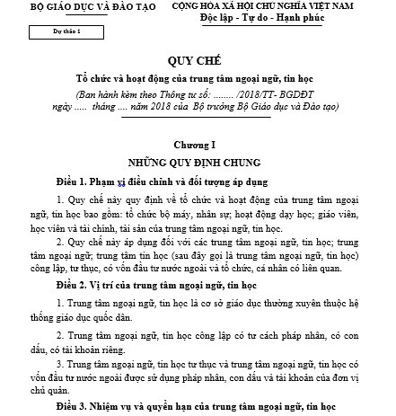Được biết, dự thảo quy chế tổ chức và hoạt động của trung tâm ngoại ngữ, tin học được lấy ý kiến đến hết ngày 27/6.