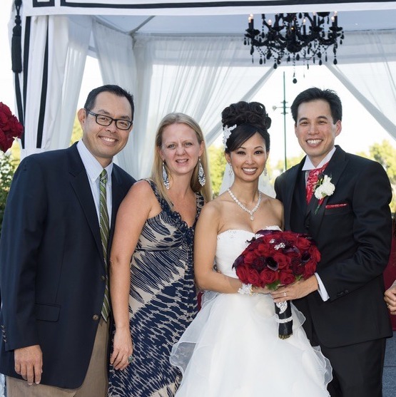 “Thầy” Alex (ngoài cùng bên trái) trong lễ kết hôn của shark Linh. Ảnh: FBNV