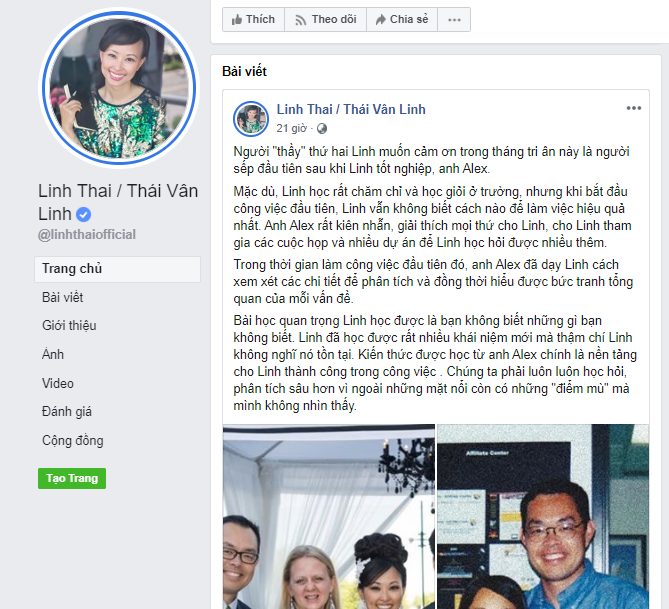 Bài chia sẻ được đăng tải trên facebook cá nhân của nữ doanh nhân Thái Vân Linh. Ảnh: FBNV