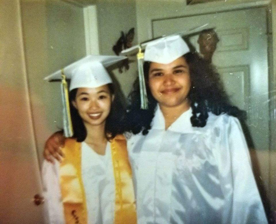 Shark Linh cùng giáo viên dạy Toán năm cấp 3. Ảnh: FBNV