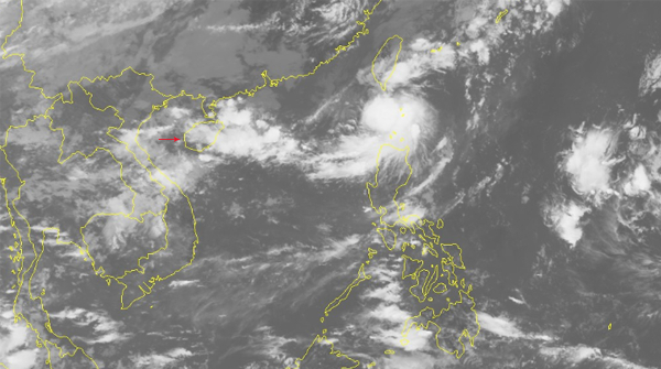 Ảnh vệ tinh về áp thấp nhiệt đới gần Biển Đông. Ảnh Trung tâm Dự báo Khí tượng thủy văn Quốc gia.
