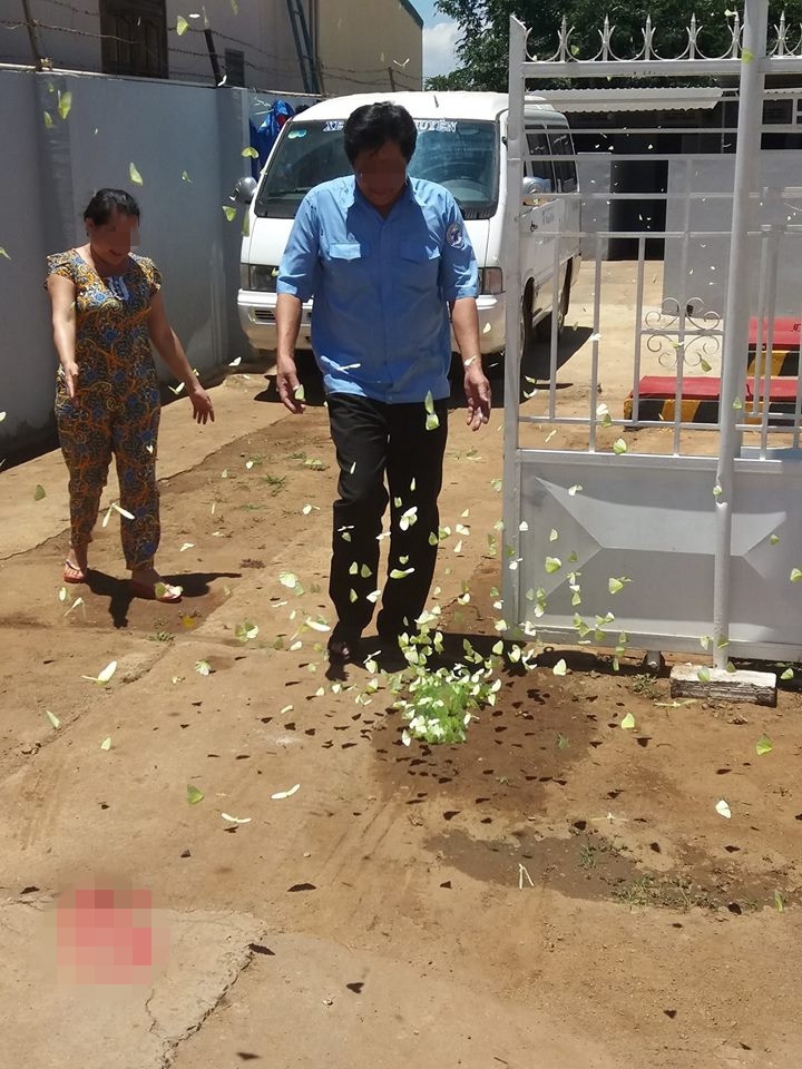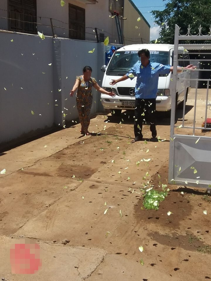 “Chả là hôm trước trời mưa, đọng lại vũng nước nên bươm bướm bâu vô. Mẹ mới kêu tớ ra xem, sẵn cầm luôn điện thoại nên kêu mẹ tạo dáng chụp luôn mấy kiểu. Lúc đó bác tài xế đang đậu xe nhờ thấy tớ đang chụp ảnh nên cũng vào luôn. Nhìn mặt mẹ vui mà tớ cũng muốn cười theo các cậu ạ.”