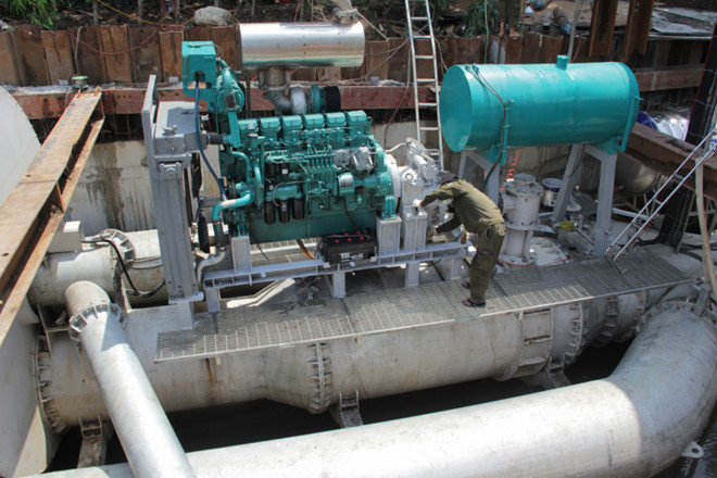 Siêu máy bơm do công ty Quang Trung thiết kế, lắp đặt để chống ngập tại đường Nguyễn Hữu Cảnh (quận Bình Thạnh).