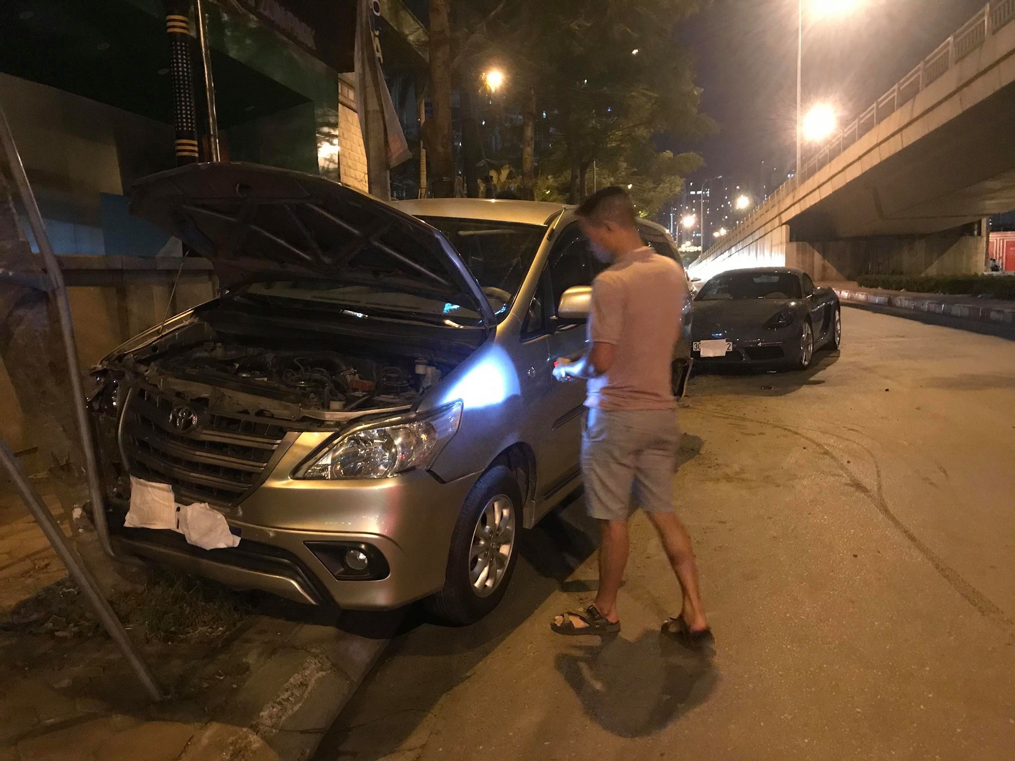 Theo một bảo vệ tại hiện trường, vào thời điểm trên siêu xe Porsche mang BKS Hà Nội lưu thông trên đường Hoàng Minh Giám đi Trần Duy Hưng. Khi xe đi đến gần ngã tư Hoàng Minh Giám - Trần Duy Hưng thì đâm vào đuôi xe 7 chỗ nhãn hiệu Toyota Innova đi cùng chiều.