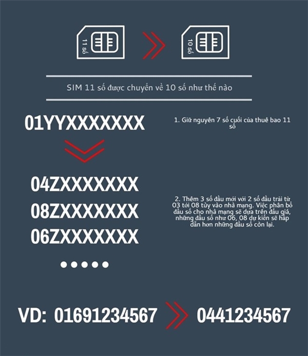Quy định chuyển đổi sim 11 số thành 10 số sẽ được thực hiện như sau: