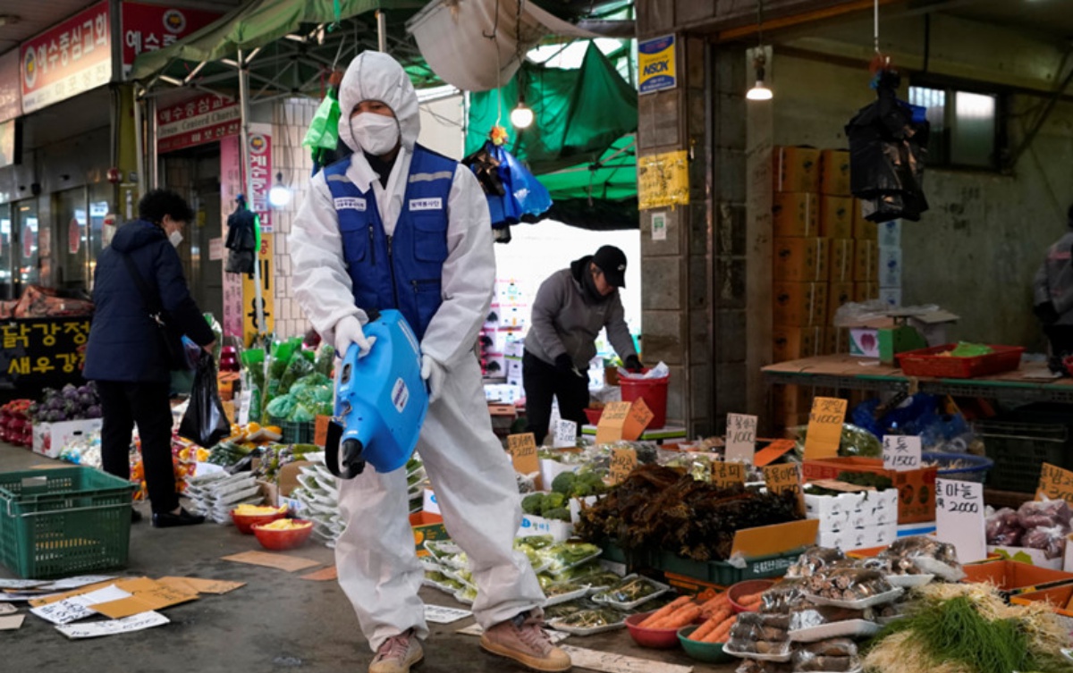 Nhân viên vệ sinh khử trùng tại một khu chợ địa phương ở thủ đô Seoul (Hàn Quốc). Ảnh Reuters