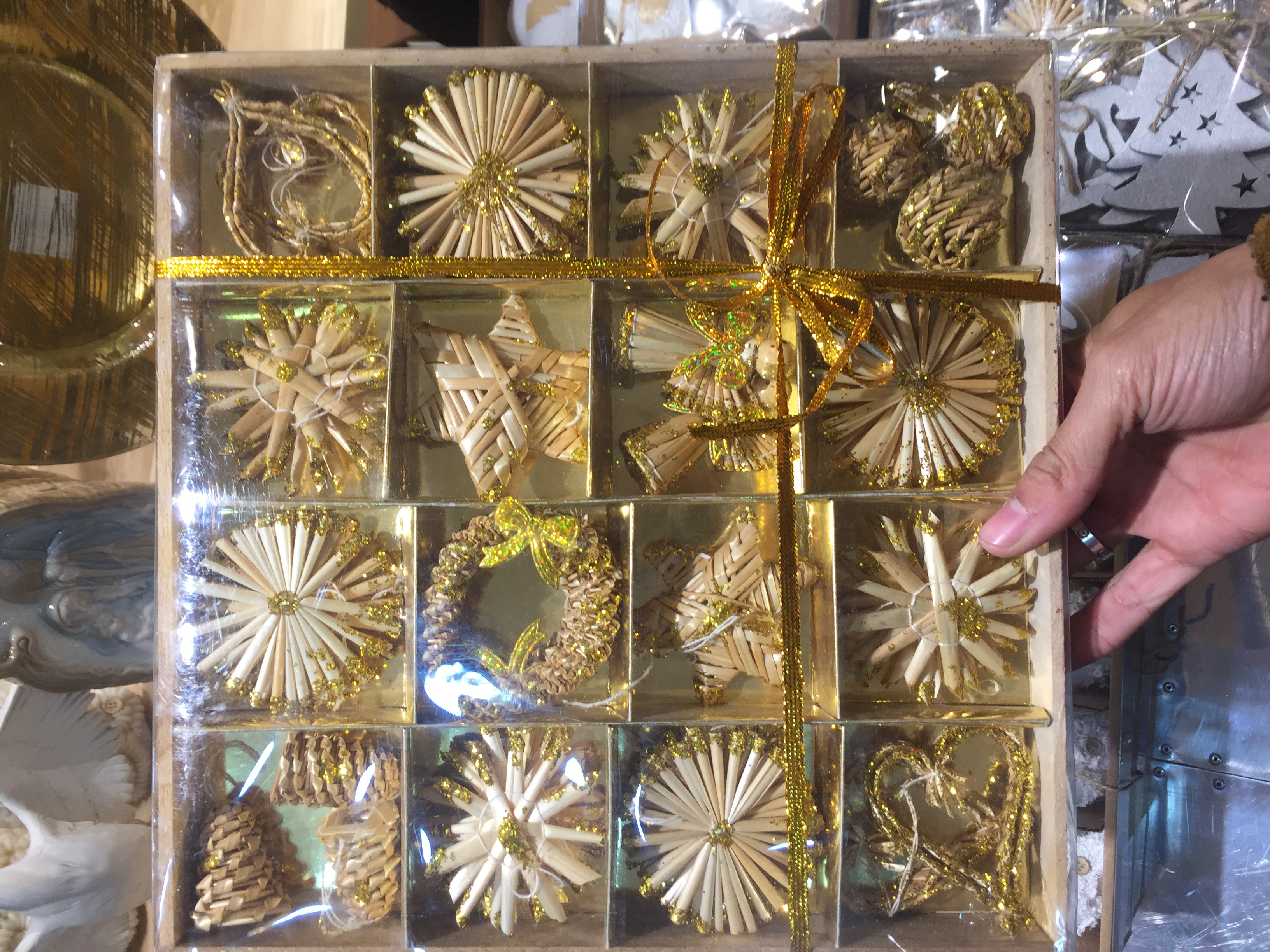 Ngoài cây thông thật, cây thông xanh Hàn Quốc, Giáng Sinh năm nay cũng đánh dấu sự lên ngôi của đồ trang trí thủ công được nhập khẩu từ châu Âu và Mỹ. Đáng chú ý nhất là hộp châu nhập khẩu - món đồ lần đầu tiên xuất hiện trên thị trường Việt Nam.