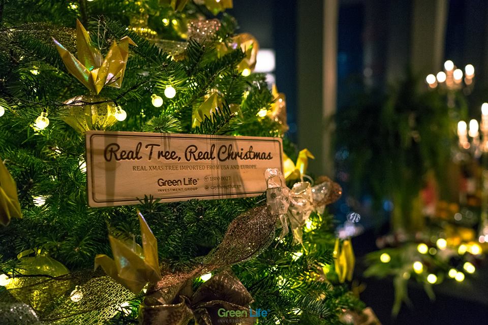 Cây thông thật trở nên lung linh khi được gắn thêm đồ trang trí.