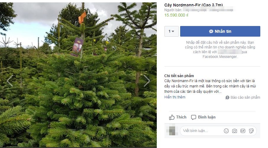 Cây thông thật nhập khẩu châu Âu, cao 3,7m được rao bán trên mạng với giá 15,5 triệu đồng.