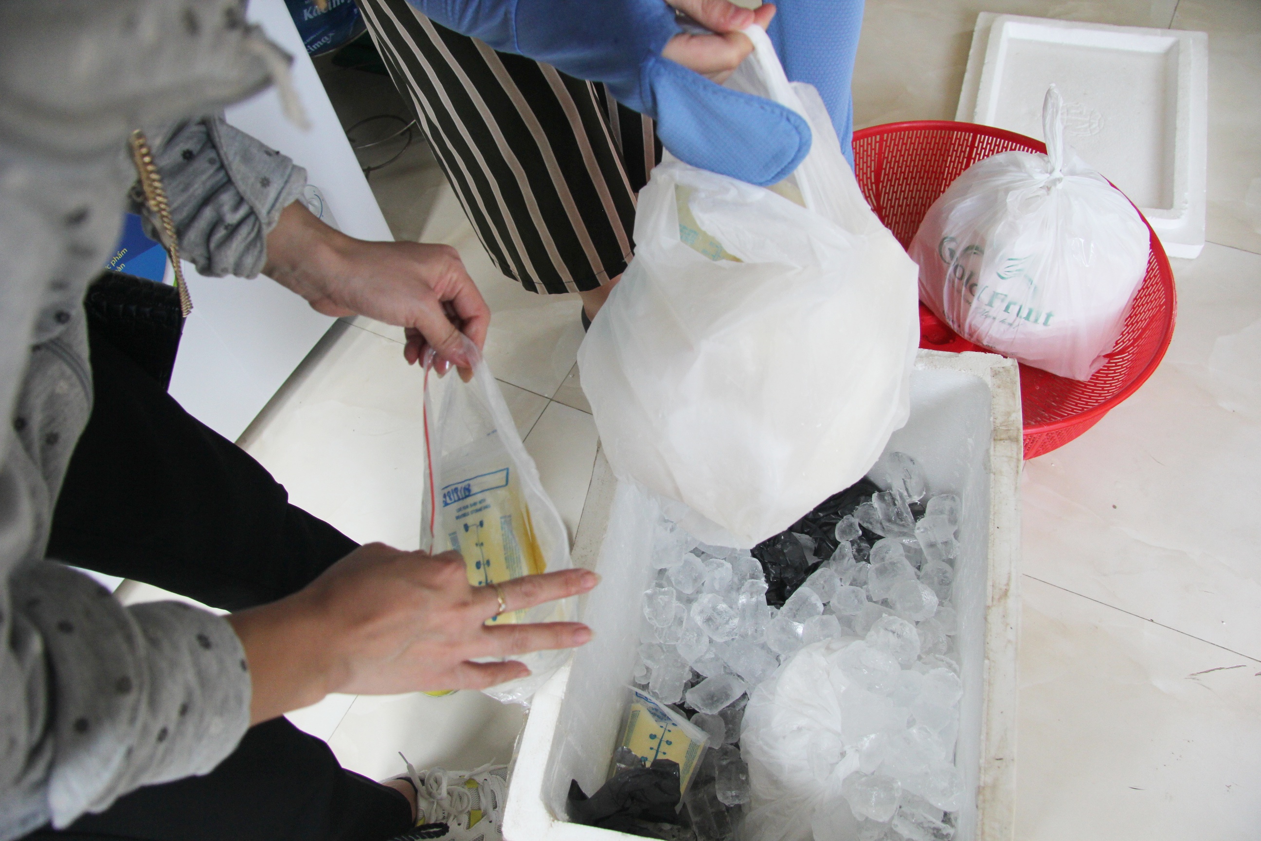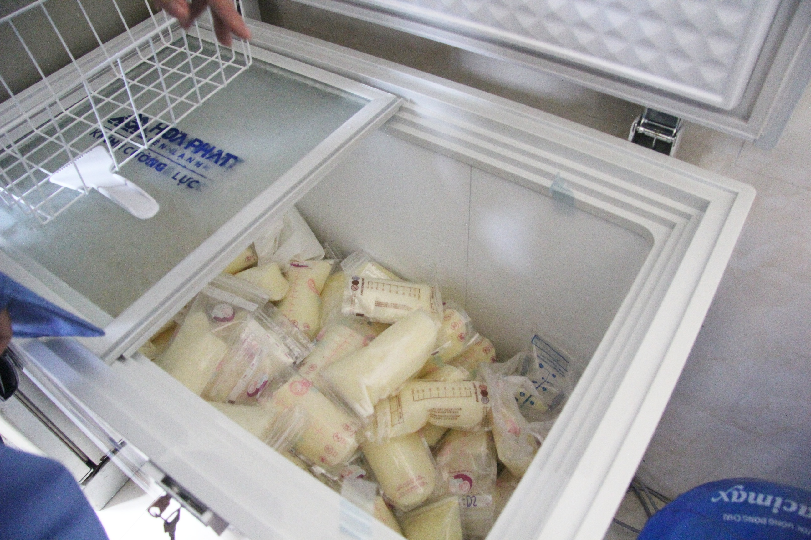Theo anh Tuyến, ngoài nguồn sữa mẹ mọi người gửi về gia đình anh cho con ăn thêm sữa ngoài. Sữa được các mẹ gửi về đều được bọc cẩn thận có ghi đầy đủ ngày tháng. Gia đình anh Tuyến bảo quản trong tủ lạnh khi nào cần mang ra hâm nóng lại cho con uống.
