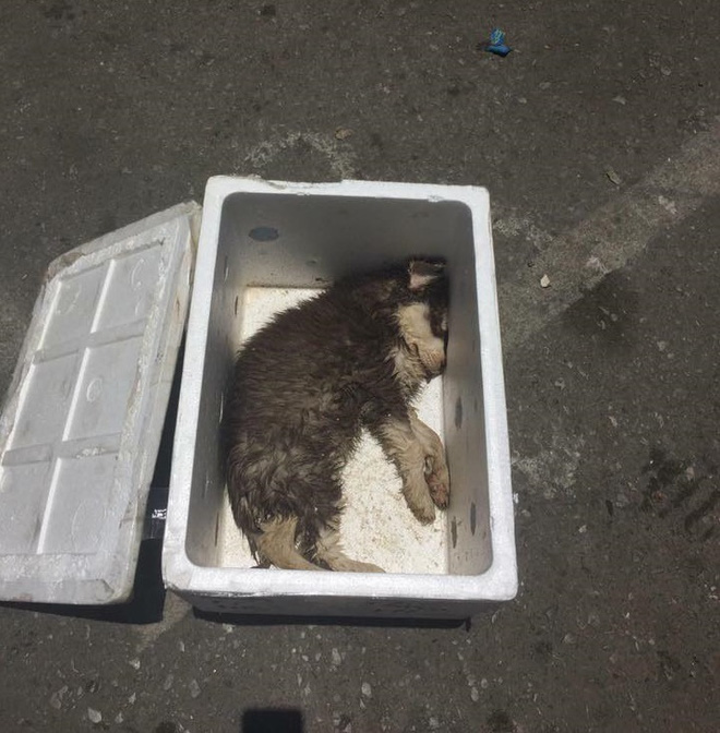 Chú chó nhỏ được cho là chết trong thùng xốp kín khi chuyển từ Nam ra Bắc.