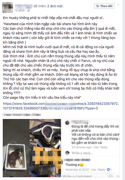 Theo như bài viết chia sẻ, chú husky này được người bán chuyển từ Sài Gòn ra Hà Nội. Tuy nhiên, thay vì sử dụng các dịch vụ vận chuyển động vật, thú cưng để đảm bảo sức khoẻ cho chúng thì người bán đã chọn cách vận chuyển tiết kiệm hơn, đó là chuyển bằng xe khách.