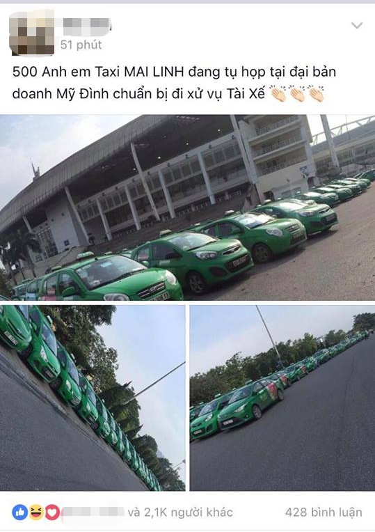 Theo đó, thông tin đăng tải với nội dung: “500 anh em taxi Mai Linh đang tụ họp tại đại bản doanh Mỹ Đình chuẩn bị đi xử vụ tài xế”. Kèm theo thông tin là hình ảnh cho thấy hàng trăm chiếc xe taxi Mai Linh tập chung trước sân vận động Mỹ Đình, quận Nam Từ Liêm, Hà Nội.